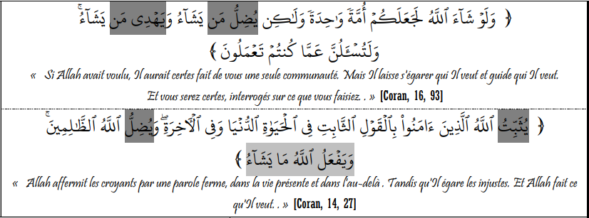 Etude de versets et de principes centraux de cette thématique du destin.Racines étudiées: (Dll) ( ض ل ل )(hdy) ( ه د ي )